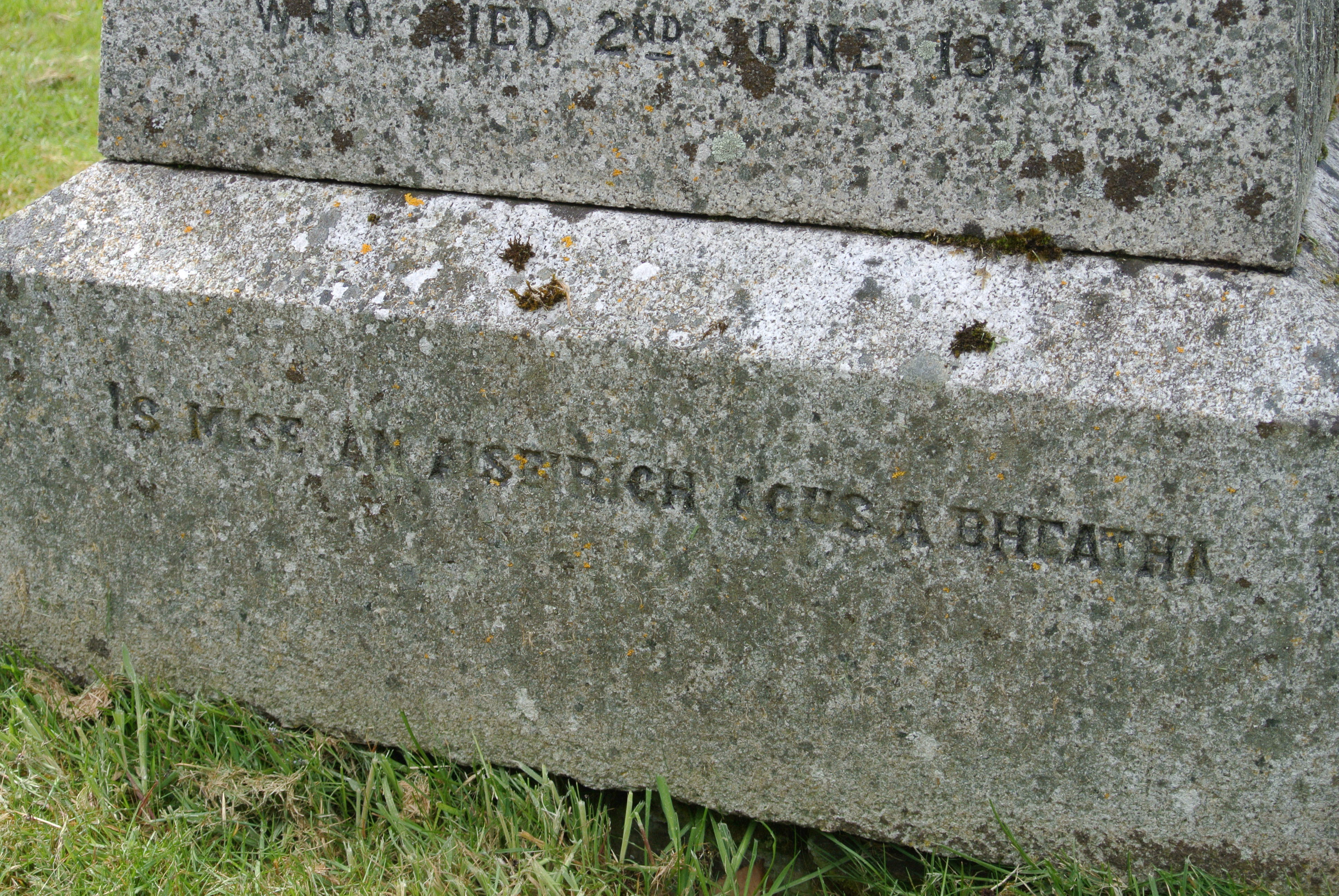 I believe that, thanks in part to the dynamic ministry of the Rev John Macdonald, the Ross family had a hope that transcended life on earth, a hope of heaven. The words on the base of Hughina Aird’s gravestone bear witness to this, a reminder that this life is not all there is: “Is mise an aiseirigh agusa bheatha.” Although I do not understand this language of my forefathers, the translation as far as I can work out are the familiar words of Jesus: I am the resurrection and the life.