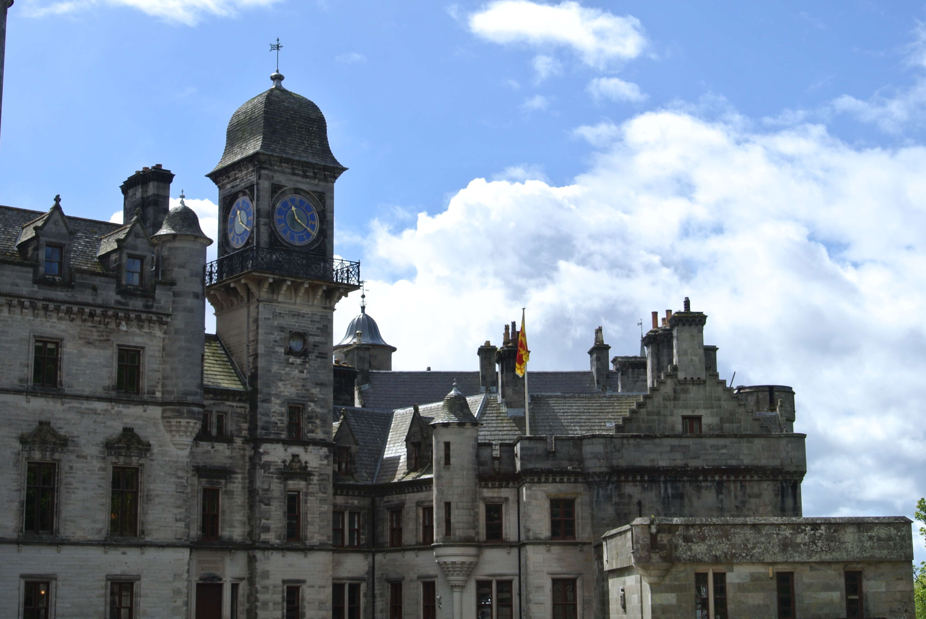 Hamish and I drove north to Golspie from Inverness one squally day at the end of May this year. The town sign informed us of two things – that the beach of Golspie had won an award, not sure for what, and that Golspie was the location of Dunrobin Castle. We drove along the main street and up the hill until we found the turn off to the castle, open for public tours to paying visitors. There was a cold wind as we exited the car, with intermittent rain showers blowing in from the sea, interspersed with patches of blue sky. We looked in at the lobby but didn’t stay. Despite the attraction of all castles to me I had no real desire to walk through a memorial to the aristocracy of this country. As I get older I am less impressed by the fabulous wealth of the British nobility, a wealth so often won and maintained at the expense of the poor majority. What makes it worse is the tendency of that same aristocratic group to look down on the masses as being of lesser value, of no real importance. Dunrobin Castle seems to epitomise this phenomenon of nineteenth century Scotland for me, since it was the Highland seat of the Duke and Duchess of Sutherland, whose notoriety during the Clearances is so well documented and remembered.