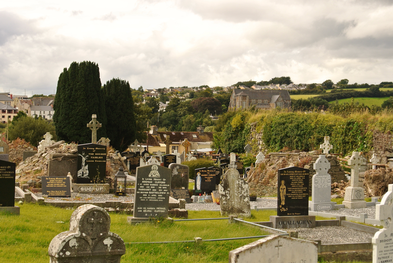 Dromevalley, the necropolis of Killorglin, contains the dust of many dear to me: there lie some of my earliest and best friends, my faithful companion and schoolmate, R. Martin, and beyond all my dear mother, with some of my brothers and sisters side by side. Being the last of a numerous family who by circumstances have been scattered over the globe and whose resting places are widely asunder, while leaning on the ivy which overhangs my mother’s grave, the beautiful lines of Mr Hemans occurred to me: –