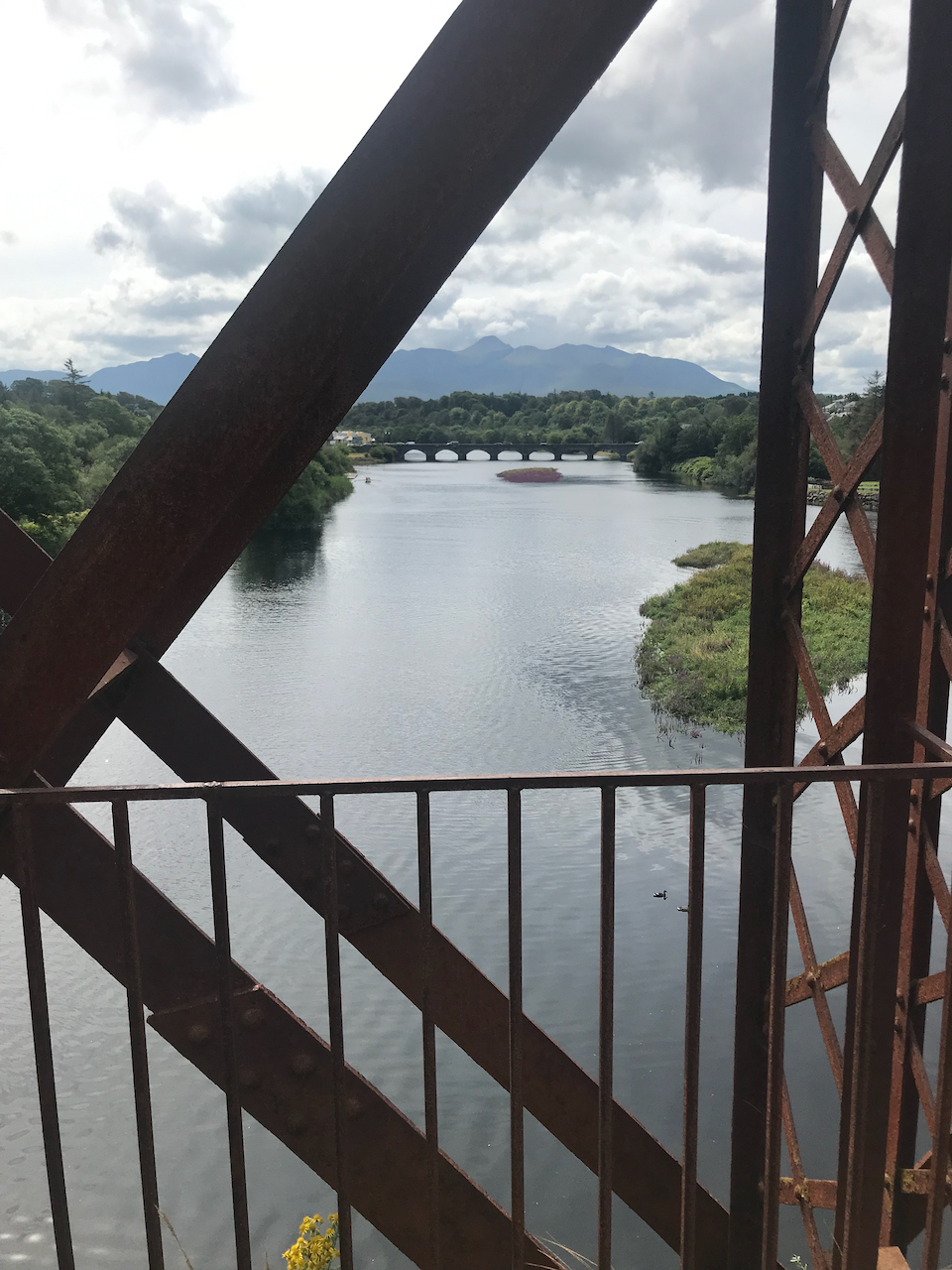 When the Hicksons lived in Killorglin there was just one bridge across the Laune, a low wooden structure, which was damaged in a high Spring tide in around 1885, some 15 years after John had left. A new road bridge was hastily constructed out of grey stone, and that bridge remains to this day, now heavily trafficked with cars, trucks and tourist buses. That same year a second bridge was built quite close by, an iron railway bridge, a viaduct, which brought the railway from Tralee to Killorglin and further to the farthest reaches of the peninsula. When John came back to Killorglin in 1893 they arrived at the town via this new railway bridge, a marvel of modern engineering to John, and enough to render him a little disorientated it seems: