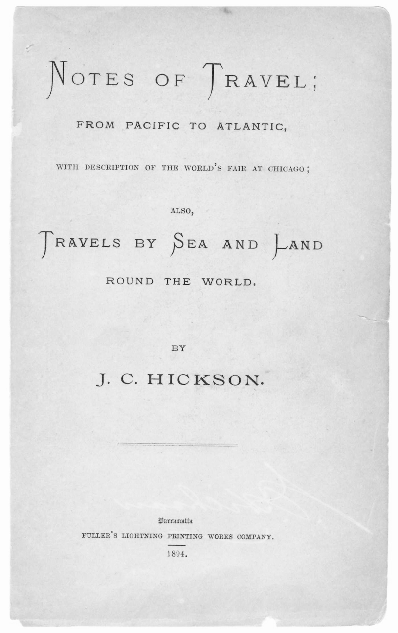 My Irish great great grandfather wrote a book called Notes of Travel, in which he recorded impressions of a journey around the world with his daughter, Alice, in 1893. Alice was 20 years of age, born in Australia, unlike her father. John’s sudden and unexpected decision to undertake this journey just a few months after his wife, Martha, had had her tenth child was apparently motivated by circumstances of Alice’s life which remain shrouded in mystery – what is known is that he desired to remove her from the advances of a suitor whom he disliked. Journeys around the world were not a quick affair in the 1890s: John must have felt the six months they would be travelling would be enough to make Alice forget him. But that is another story.